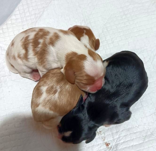Máme štěňátka. Dne 9. 7. 2022 se nám narodila 3 štěňátka. A to 1 kluk v barvě trikolor a 1 kluk a 1 holčička v barvě blenheim.